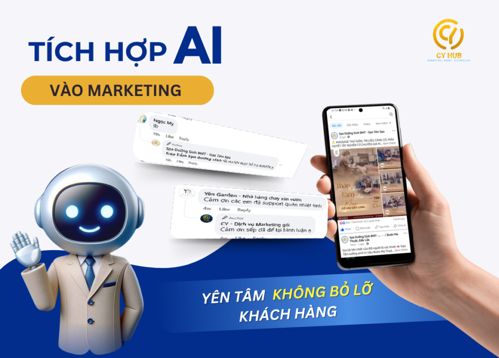 CY HUB mang đến giải pháp AI giúp doanh nghiệp tự động hóa quy trình marketing, tối ưu quảng cáo và nâng cao trải nghiệm khách hàng. Với chatbot AI thông minh, doanh nghiệp có thể tư vấn và chăm sóc khách hàng 24/7, cá nhân hóa từng cuộc trò chuyện mà không tốn nhiều nhân lực.